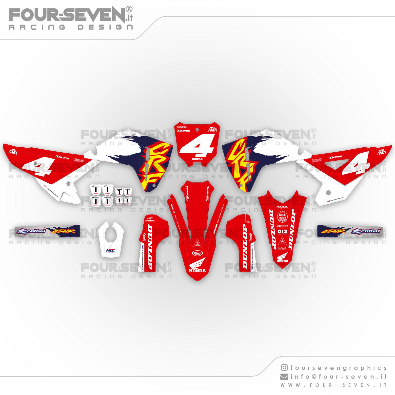 il kit NON include: Copertina sella, adesivi telaio, adesivi scarico, adesivi trasparenti, adesivi forcelle, plastiche o qualsiasi altro elemento di abbellimento usato per la foto.